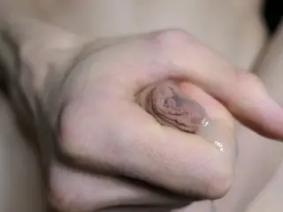 She only Pull back his Foreskin when he Cum and after it Beginning the Real Handjob